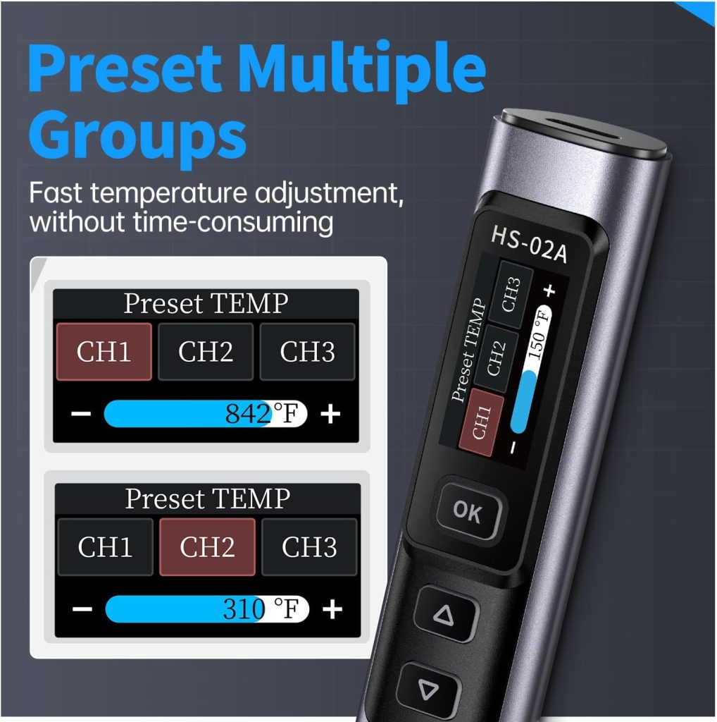 Adjust from low to high heat with precision, and save up to three preset temperature groups for fast switching between tasks without wasting time.